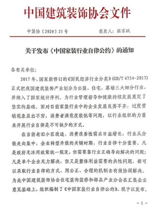 2020年9月8日,由中国建筑装饰协会住宅装饰装修和部品产业分会组织编制的《中国家装行业自律公约》(以下简称《公约》)正式发布。