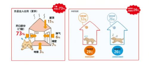 门窗作为墙壁上最大的洞口,是冷热交替的重要通道。举例而言,门窗在夏季中热量出入占比高达73%,可直接导致室内升温引发宠物中暑。 通世泰系统门窗内部采用优质隔热材料+多腔体铝合金断桥结构,可有效阻止室外热量传导,降低因温差变化导致的宠物中暑几率。