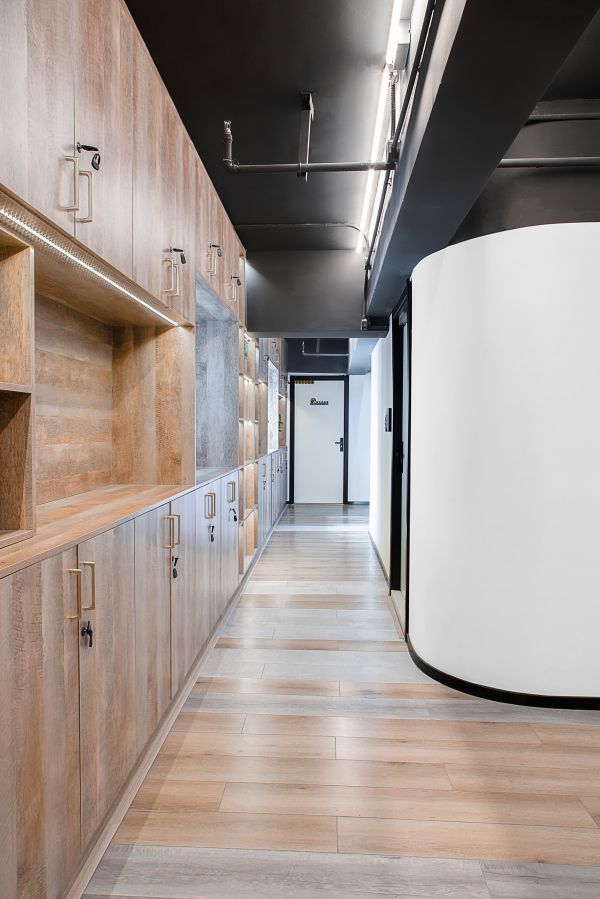光线以自然光和人工光相互交错使用为主,人工光源分多区的双种模式,日常工作模式和夜间加班模式。各种人工光源均采用仿自然光的模式来照明。我们模拟出天光,让建筑结构感更加坚实,光影之下见证着时间的意义。在光线下,空间便有了表情。