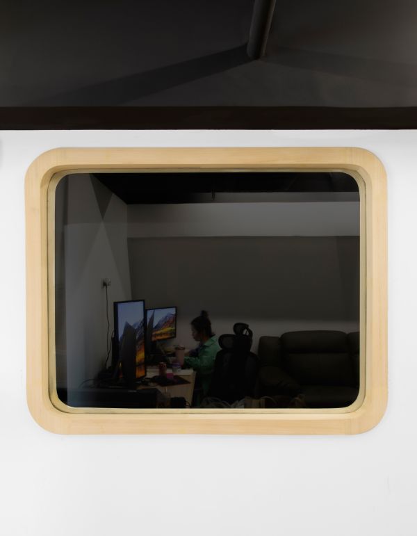 这个作品设计目的是通过在原始框架的空间结构内,创建自然、建筑、物与人之间的关系,在自然而然的空间中塑造有生活的工作方式。