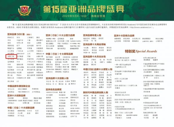 第15届亚洲品牌盛典在海南自贸港胜利开幕,盛典现场ABAS专家委员会常务副主席周君发布2020亚洲品牌500强榜单,书香门地与阿里巴巴、华为、中国工商银行、腾讯、丰田、中国平安、三星、中国建设银行、索尼、中国人寿等品牌共同登榜“2020亚洲品牌500强”荣誉。