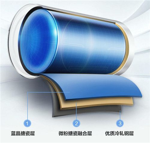 华帝这款电热水器就是采用的搪瓷内胆,内胆最里边是用的蓝晶搪瓷涂层,防污防腐蚀,更加耐用;中间是微粉搪瓷融合层,粘合力强,能有效抗腐蚀抗热膨胀;最外边采用2mm厚度优质冷轧钢层,大大增强了抗压能力。