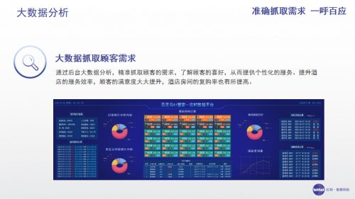 百灵鸟AI管家系统为酒店节本增效,同时也有着强大的数据分析能力,通过后台大数据分析,精准抓取顾客的需求,了解顾客的喜好,从而提供个性化的服务。提升酒店的服务效率,顾客的满意度大大提升,酒店房间的复购率也有所提高。