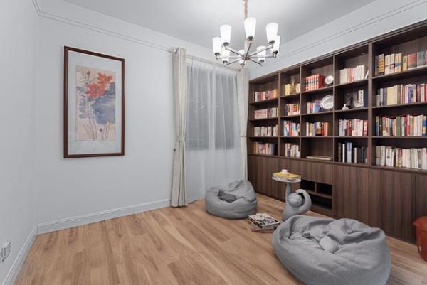 该多功能空间的设计满足临时客房的需求的功能的同时,更多的时候是爱读书爱喝茶的男业主的私密空间,整个空间无论从造型还是色彩上,均表达的沉稳与冷静。
