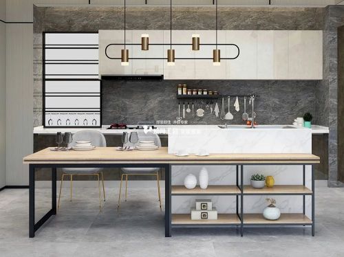 天然石材纹理:精密的原纹扫描采集技术和高清喷墨技术能高度还原石材天然的色泽纹理,形成通体效果,臻致优雅,蕴含着大自然的气息,让厨房设计更具高贵的艺术气质,比大理石还高级。