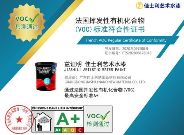 佳士利水漆荣获法国A+认证、抗病毒认证