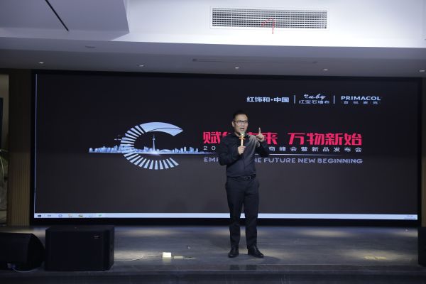 大会伊始,浙江红饰和家居有限公司总经理凌厉先生上台致辞,对全场经销商的到来表示了热烈欢迎,感谢各位经销商与红宝石的一路同行,并简单介绍了发布会流程。