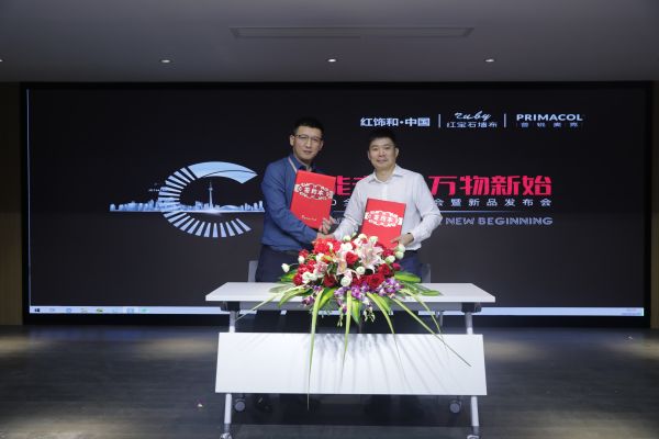 随后,浙江红饰和家居有限公司全国营销总经理周吉辉先生与和君智业集团副董事长刘勇先生签订战略合作。随后周吉辉先生进行发言,在发言中其表示,希望每一位经销商都能与总部保持密切联系,总部将持续为经销商赋能,及时对经销商进行帮扶。