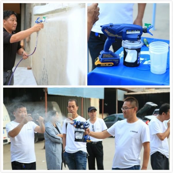 固瑞克华北区经理孙光雁为参会的漆工分享了固瑞克的动力滚筒、手持电动喷涂机、低压喷嘴、腻子喷涂机等多款喷涂设备的优势及应用场景,漆工师傅对新设备表现出浓厚的兴趣。