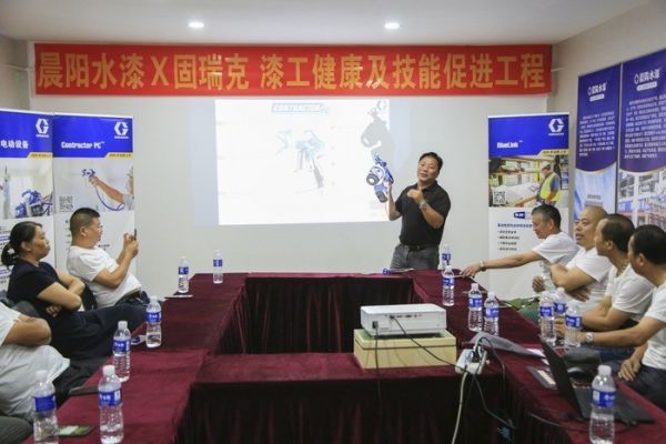 为积极践行住房城乡建设部就《加强建筑工人职业培训工作发布指导意见》中“五年实现全员培训持证上岗”的政策要求,呼吁更多的社会力量给予漆工更多的关注与关爱,推动漆工健康与漆工技能的提升,在中国水性涂料产业战略联盟指导下晨阳水漆联合固瑞克举办的“917漆工健康日”漆工健康及技能促进工程首站在石家庄举办,由晨阳水漆华北大区石家庄省区经理王世军组织的数十名漆工师傅参与了培训活动。