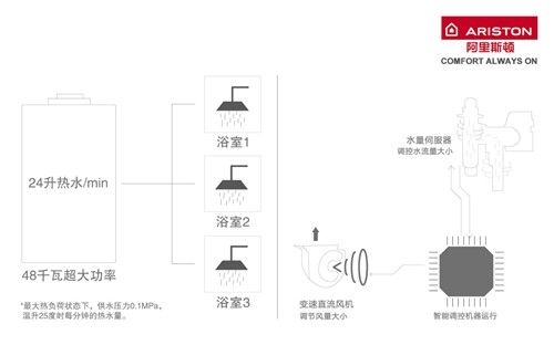 为充分照顾大户型用户对于生活日常热水使用的需要,阿里斯顿HSL有容系列燃气热水器在功能上分别从两大方向入手。首先,产品自身拥有48千瓦超大功率,每分钟可提供24升热水,可满足3个卫生间同时沐浴,或者一个卫生间浴缸洗另一个卫生间沐浴等多样化的居家用水需要,以此完美解决三代同堂家庭的需求,让大家足不出户也能享受到五星级酒店般的澎湃沐浴体验。其次,阿里斯顿HSL有容系列燃气热水器采用双阀精控,有效实现了恒流恒感。通过搭载的双温感系统,可以时刻监测进出水温,再通过智能CPU快速精准运算,燃气比例阀和自动水量调节阀双向联动,进而做到了电子级精准调控出水温度,即便家人成员增多用水需求增多,亦能保证大家拥有舒适的沐浴体验。