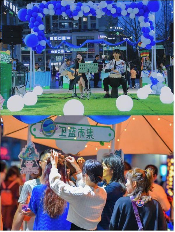 同时,一入夜,市集内“星星闪烁”,乐队的民谣之声娓娓道来,自由、快乐、热爱、真实,随之传递开来。