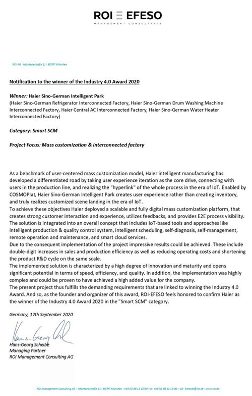 体验驱动,海尔智家获德国工业4.0 大 奖