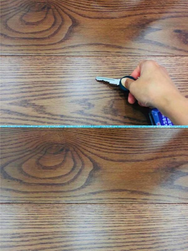 选择一款好地板,除了关注木材本身是否优良之外,地板表面的涂装工艺也是非常重要的。小编用剪刀尖锐的钥匙在地板表面使劲划擦,结果未出现划痕,也没有漆膜碎屑产生,可见这款地板具有出色的耐磨工艺,能让您的生活从此不再小心翼翼。