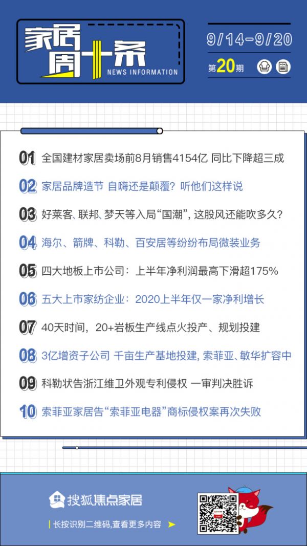 周十条:全国卖场前8月销售4154亿 索菲亚商标侵权案再败诉