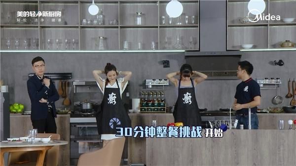 跨界嘉宾助阵,美食综艺形式开启沉浸式厨房体验。嘉宾敖定雯和莫澳欣现场搭档美的悦家套系新品进行厨艺大比拼,挑战30分钟完成4道菜,通过备菜、烹饪、餐后清洁全流程动线,体验产品特点,全面传递产品硬实力,打造一场集智能化、多场景、趣味互动于一身的新品云发布会。