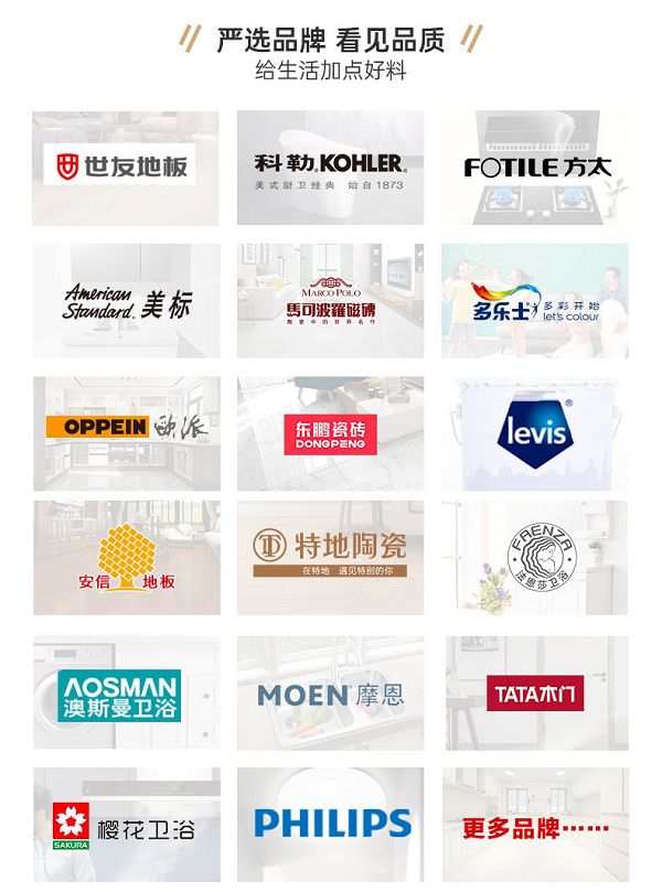 严选品牌,家装品质看得见。百安居自1999年登陆中国市场以来,不断升级与完善产品和服务,为消费者提供15大类10万多种优质建材,并与众多一线知名品牌强强联合,为千万家庭提供优质的产品与服务。百安居产品均为正品直供,甄选多家知名品牌。此次全新升级的套餐精选科勒、美标、马可波罗多乐士等众多知名家装品牌,覆盖客餐厅、卧室、厨房、卫生间及阳台等所有居家空间的家装需求,所购材料均符合百安居环保标准。高标准高品质,正品材料,铸就品质家装。