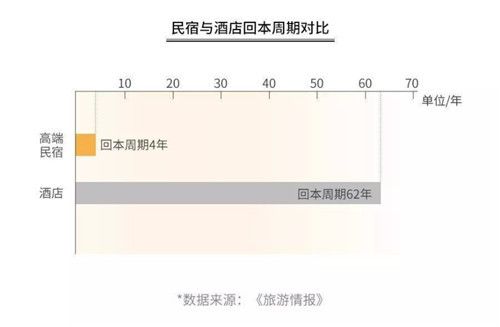 民宿不是“乌托邦”,装修改造、设计采购、房租水电、引流获客,样样都需要真金白银。尽管如此,2016—2018年间,民宿酒店节假日甚至一房难求,淡季入住率也能达到40%左右。而机构调查显示,相比传统酒店行业62年的回本周期,民宿可以做到4年。