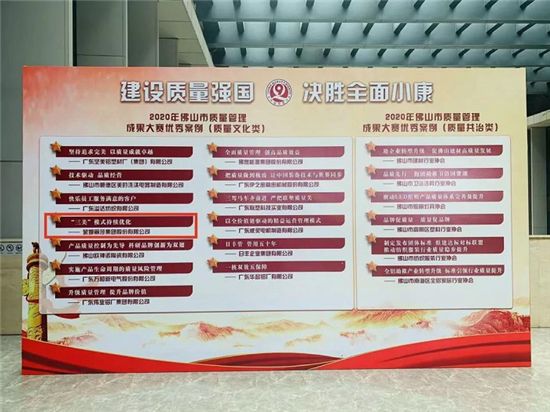 9月18日,由佛山市人民政府主办、佛山市市场监督管理局承办的2020年“全国质量月”活动暨佛山“品质工程”暖企三年行动正式启动。蒙娜丽莎集团三美模式成为2020年佛山市质量管理成果大赛优秀案例,获得质量文化类奖项。
