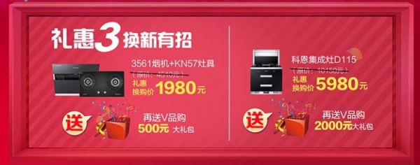 在中秋国庆双节活动期间购买科恩智能集成灶“格斗III系”D115(原来价格:10150元)礼惠换购价仅需5980元;另再额外赠送价值2000元的V品购大礼包一份。科恩电器作为全品厨电制造领域品牌企业每一次搞活动皆坚持给用户们更优惠、更省心、更愉悦的一站式购物体验!