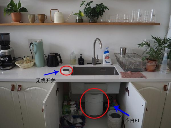 下图中红色大圈里面高颜值的小白就是F1,装在橱柜里很小巧的,虽然颜值高,但是平时都关着门,也不露面