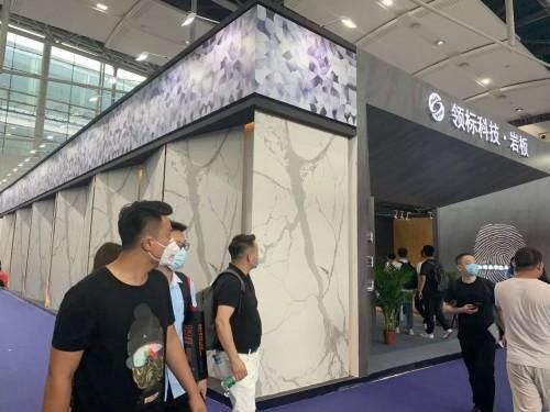 2020年7月广州建博会上,领标科技·岩板初次亮相。旗下品牌唐驰岩板主打概念是超薄岩板以及花色定制。