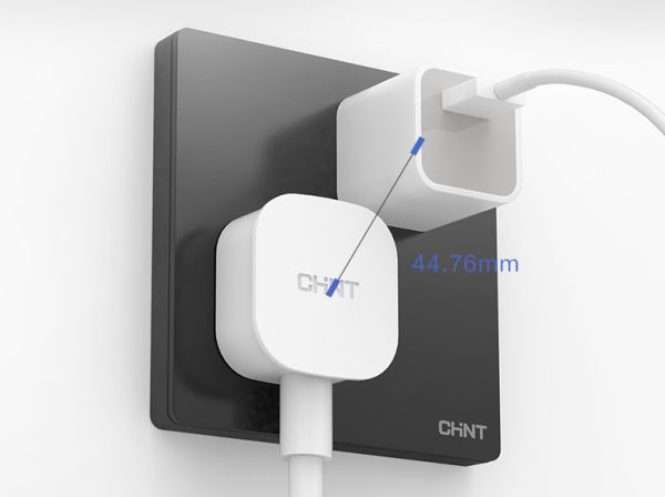 五孔插座只能用一边,是一件非常让人抓狂的事情!因此在选择五孔插座时,一定要注意孔间距,或者买正泰开关这种斜五孔的插座,孔间距44.76mm,即插即用,让生活少点纠结。
