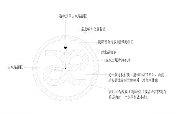 设计用材:地板(ART51,浪琴海019),金属条,施华洛世奇白水晶,蓝水晶,金属等