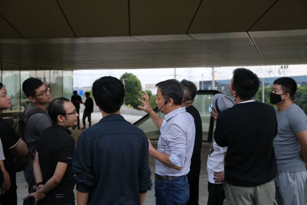 上海书香门地总部基地主创设计团队、法国夏邦杰建筑设计事务所刘祚民老师也亲临现场,带领温州设计师共同参观这座设计感十足的建筑,刘祚民介绍到,总部基地设计由一幅清代石涛的山水画中获得灵感,因此决定以“高台”为设计元素,高台是给人冥想的场所,也使建筑在平坦的基地上获得一个眺望的平台。高台上挑出的雕塑状的形体如同生长的大树,刚毅而坚韧。平台一侧的斜坡上潺潺流下的泉水和周边的水池给予它们生命的源泉,也体现了书香门地的企业精神。