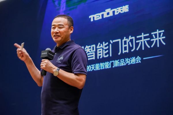 会议期间,亚太天能董事长王长海先生就天能智能门的性能及优势作了详细介绍,展现了亚太天能智能智造的先进掠影。