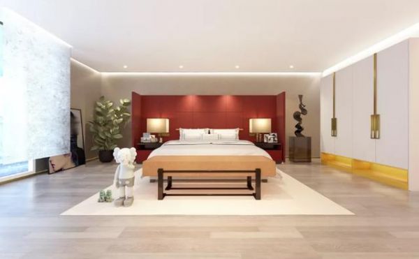 以暮雪掩盖下的紫禁城的中正静美为设计灵感,“琛阁”电视柜体外观大面积选用茶白色,柜体把手以故宫黄云纹装饰,柜体内部以经典故宫红装饰,寓意“开门见喜”,整个客厅空间风格和谐统一,演绎人间至美故宫雪景。