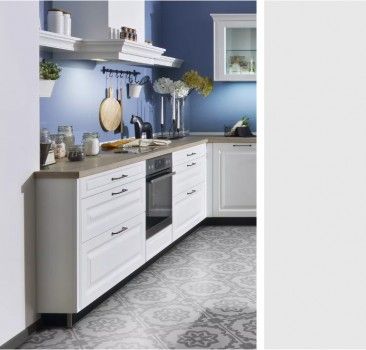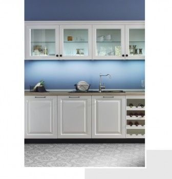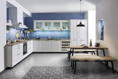 ebke安咖这套德国橱柜主体采用PORT D系列门板,材质安全环保,白色柜体呈现朴素、淡雅、干净的感觉,与蓝色墙面、复古瓷砖搭配和谐,显得分外明亮,给人以唯美梦幻的视觉感受。