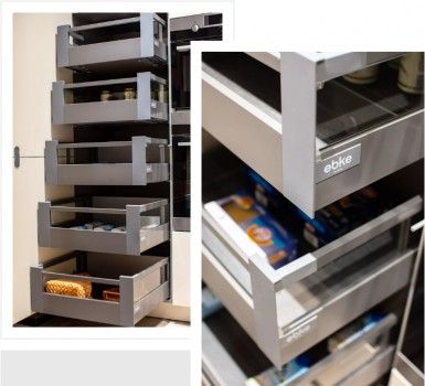 德国安咖ebke的这套橱柜采用高柜内抽设计,收纳能力满分,帮助主妇们快速收纳以及取用物品,适合存放孩子们的零食、饮料等物品。