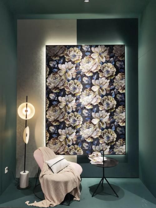 1. 本次展会,可罗雅推出了多款原创设计的独幅系列墙布,独幅系列大部分是由国内外知名设计师原创设计的,循环花工艺突破了以往对墙布的尺寸限制,更有利于别墅、五星级酒店等市场诉求。