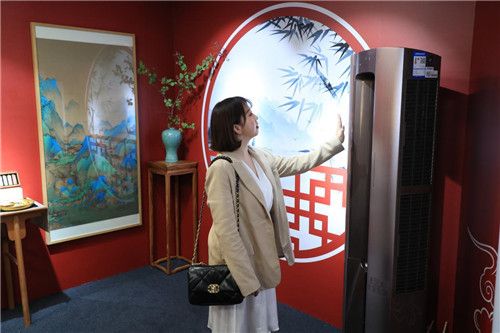 走进展区,首先映入眼帘的是卡萨帝空调风吹《千里江山图》的复刻版,以此展现生态软风对珍稀文物的养护。就在不久前,卡萨帝空调在北京东苑戏楼完成的生态软风4大挑战,在"青山始见新颜色"挑战环节,将多位画家共同完成的《千里江山图》1:1复刻图青绿部分涂上23℃感温材料。常温环境下,画作颜色平淡,而在与卡萨帝空调创造的23℃恒温环境充分接触后,青绿颜色显现,"千里江山"现真颜。