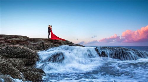 这家影楼位置就在海边,而且海边非常适合拍摄婚纱照的地方,海边拍摄婚纱照是很多新人都喜爱的一个地方。