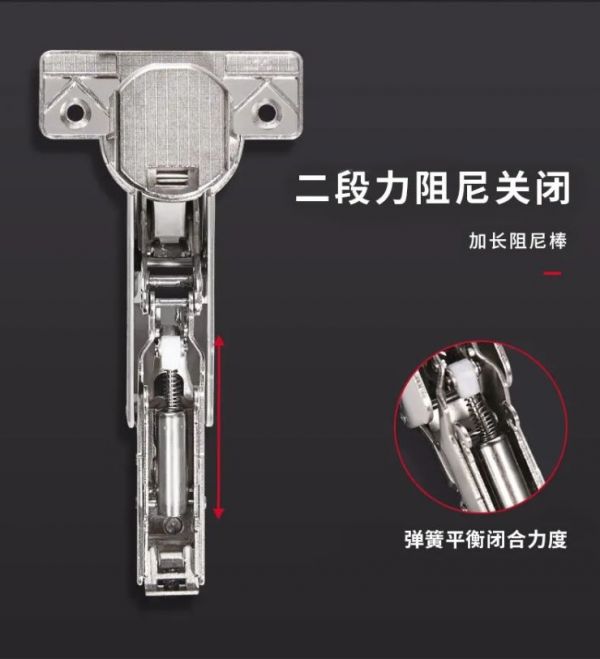 Metalla阻尼铰链无需再单独添加外置阻尼,阻尼已经集成在铰链之中,二段力阻尼关闭,轻柔闭合,为每扇门带来舒适、动感的开合体验。