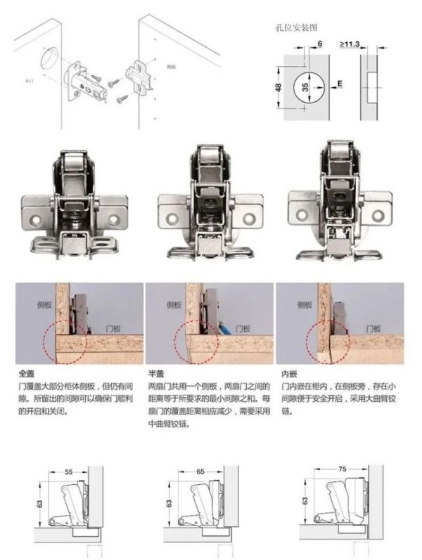 *关于165°铰链如何辨别全盖、半盖、内嵌的说明