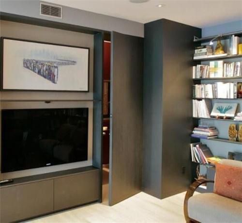 隐形门也可以采用与家具、艺术墙相呼应的手法,成为空间的一件装饰物。这种呼应式的艺术门,和挂画等装饰物相比,在设计立意上要更高一级,因此产生的效果也更出人意料。成为室内一件时尚的艺术品。