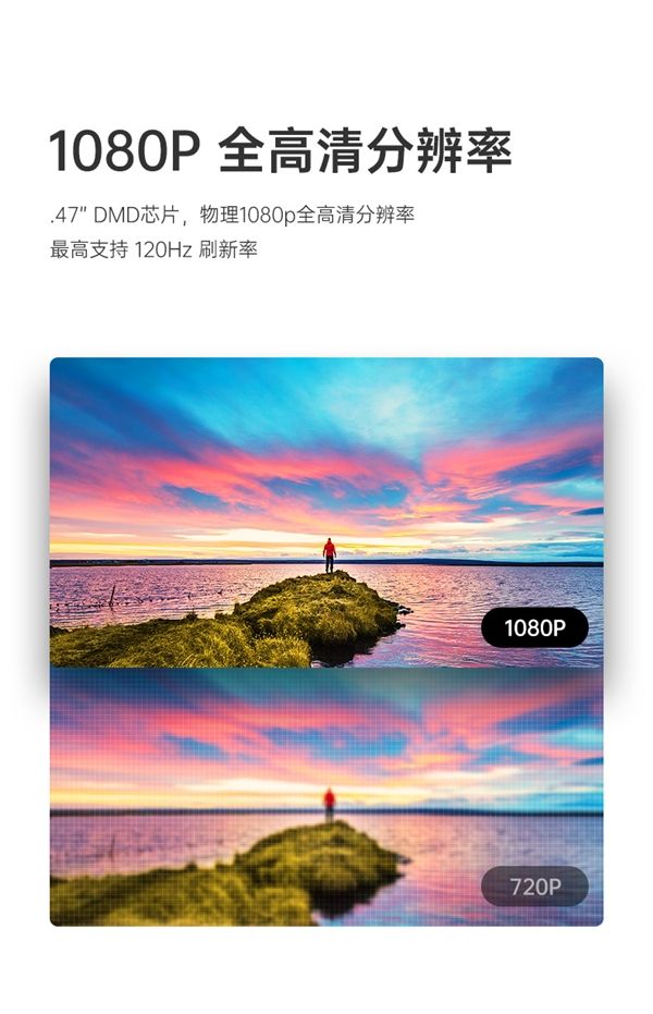 保持.47”DMD芯片,物理1080p全高清分辨率的优势下,本次坚果J10的亮度由前代的2000ANSI提升至2400ANSI,是当前市场家用投影仪中最高亮度参数,体现在消费者实际使用场景中,意味不论是室内开灯或白天日光强烈的环境,多种场合下都能播放出清晰的画面。