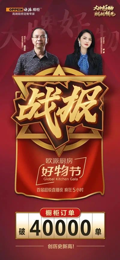 欧派的总裁直播更是搞得如火如荼。从第一期“总裁骞到,直补一个亿”的横空出世,到孙俪“娘娘价到,一诺骞金”的颠覆性成功,再到“大牌定制 三十而已”紧跟热点,杨鑫这个直播IP已经成为欧派营销新赛道上的重磅利器和签单保障,创造了一波又一波的惊喜。在“大牌定制 三十而已”这场直播中,欧派更是3小时力破40000单,成绩可谓十分亮眼。而杨鑫6.12直播首秀的成绩是近30000单,效果提升明显。