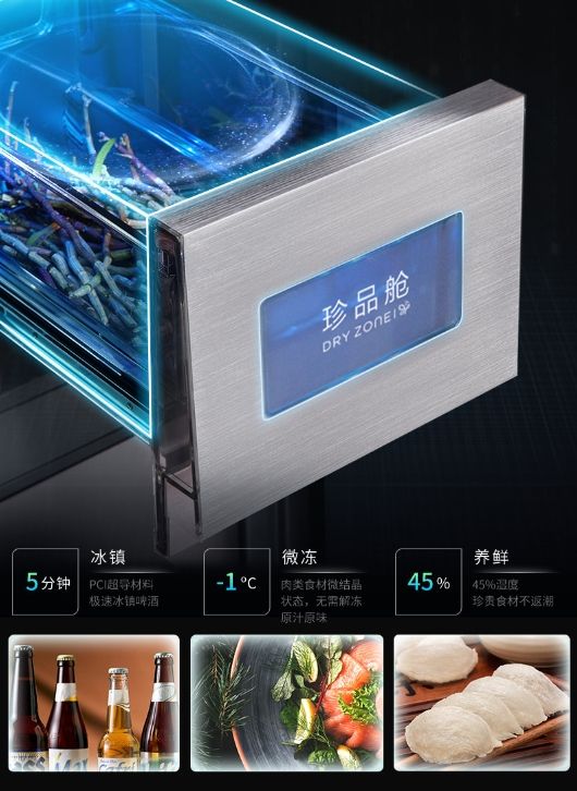 不仅如此,TCL X10养生舱冰箱的“蓝点舱”也是“食材品质担当”,它搭载了TCL行业首创的蓝点舱科技,拥有相变超导传热材料制成的全金属抽屉,加上5D多维环抱出风,能够快速的提高制冷效率,实现极速冷冻,十分钟就能将肉类冷冻,充分的保留了食材原有的新鲜口感,给用户带来最有品质的鲜肉。