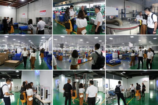 益田集团领导一行先后参观了樱花智能锁生产车间、全自动生产线、产品检测中心、企业展厅,重点就樱花企业管理、产品生产与研发情况进行了进一步考察。对樱花智能锁总部生产规模、产品质量、安全生产体系给予充分肯定,并对公司规模化、规范化、自动化、标准化和良好的员工风貌予以高度评价。
