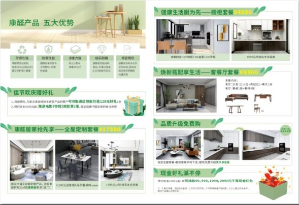 本次活动主打“无醛”概念,以卡诺亚康醛板、维克托系列岩板餐桌椅新品组合为基础,推出各项优惠套餐组合,包括: