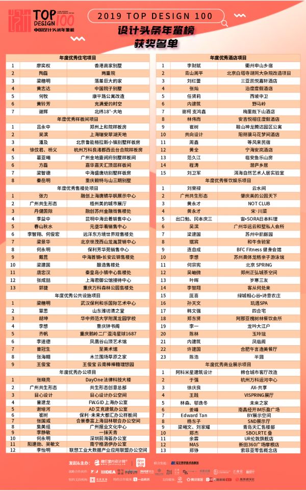经由组委会批准,2019 TOP DESIGN 100设计头条年鉴榜奖项获奖项目榜单正式公布!