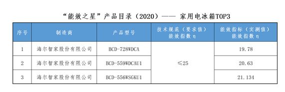 一级能效就是天花板?冰箱"能效之星"公示,海尔包揽前三