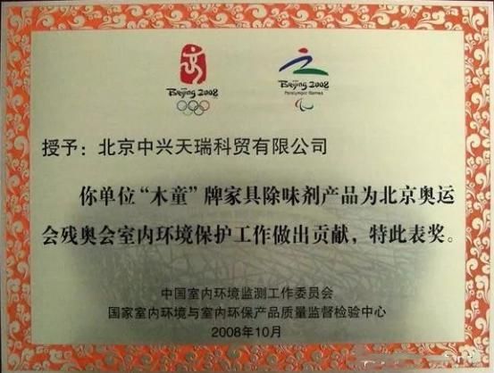 北京中兴天瑞科技有限公司在2000年成立时,国内还没有成熟的除甲醛产品,在引进日本先进的常温无光触媒技术后,又创新研发了人造板甲醛清除剂这一长效除甲醛产品系列,填补了国内空白。在此基础上不断研发创新,形成了一系列针对室内空气污染的成熟高质量产品。更是在2007年参与北京奥运会残奥会场馆的治理服务,并荣获“北京奥运会残奥会室内环境保护贡献奖”。