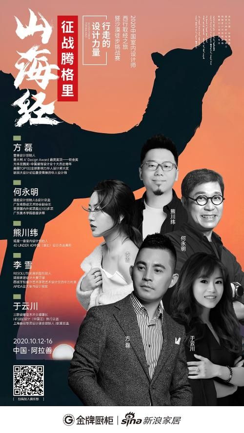 10月12日~10月16日,由金牌厨柜与新浪家居联合主办的“山海经·设计力量”主题活动将在阿拉善盟腾格里沙漠共同探享银川独特的塞上文化,开启2020中国室内设计师西行取经之旅,继续我们对设计力量的探索。
