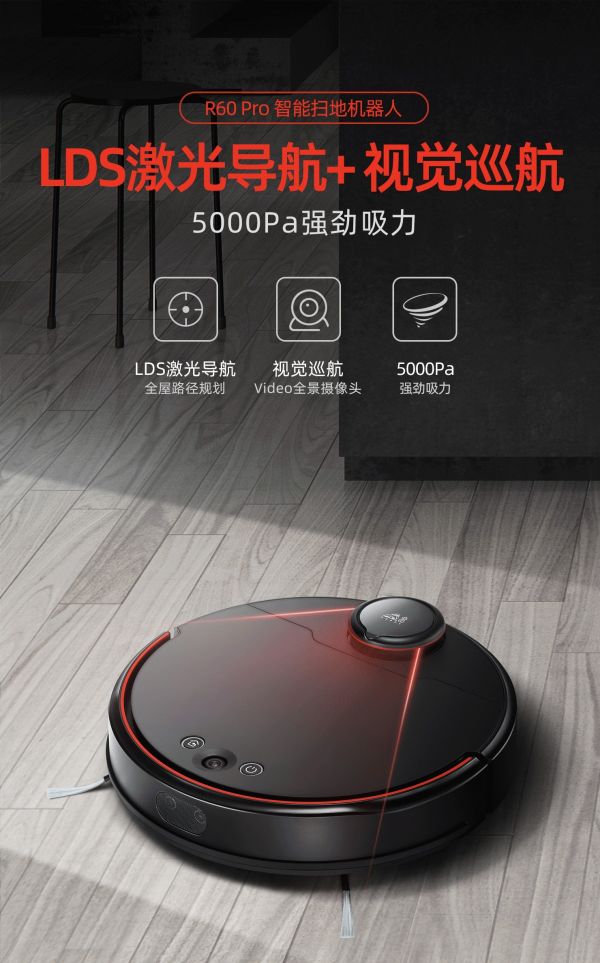 目前,市面上扫地机器人吸力多在1000Pa~2000Pa之间,而小狗R60 Pro应用吸尘器风道技术,吸力拉升至5000Pa,达到专业吸尘器级别。同时它拥有升级后的智能导航,顶置LDS激光雷达,能快速构建家居地图,配合超声波传感器,轻松避障不磕碰。而前部的Video全景摄像头,可以实时关注家中状态,具备安防功能。其高达4小时的长续航,更是轻松驾驭大户型清洁。另外,如果用户哪天有事外出,还可以在APP远程遥控或提前预约清扫,再也不用自己动手做家务。