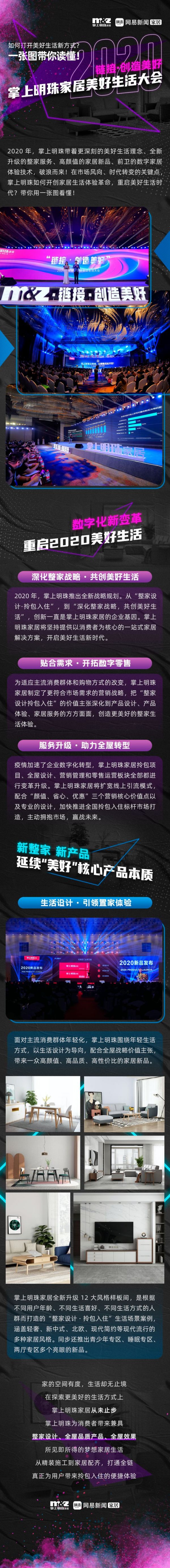 2020年,掌上明珠带着更深刻的美好生活理念、全新升级的整家服务、高颜值的家居新品、前卫的数字家居体验技术,破浪而来!在市场风向、时代转变的关键点,掌上明珠如何开创家居生活体验革命,重启美好生活时代?带你用一张图看懂!